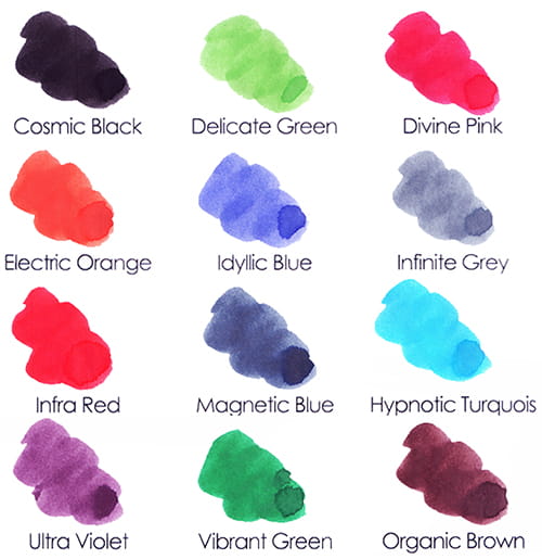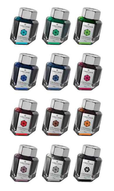 Atramenty w pięknych graniastosłupowych szklanych butelkach 50 ml.