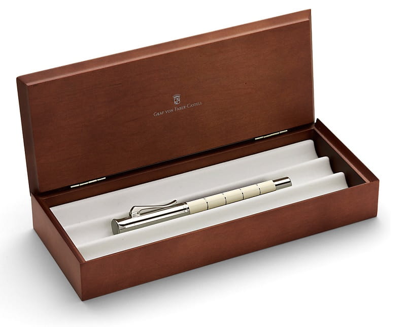 Korpus pióra wykonany został z drogocennej żywicy w kolorze kości słoniowej, dodatkowo zdobią go filigranowe pierścienie, stąd też nazwa kolekcji - Anello – z włoskiego pierścionek. Perfekcyjnie uzyskany kontrast w kolorystyce korpusu jest niemal niewyczuwalny w dotyku: Skuwka, sprężysty klip oraz pozostałe wykończenia wykonano z niezwykle błyszczących, pokrytych platyną materiałów.