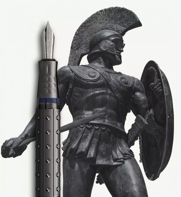 Skuwka i klips pióra przypomina kształt ich hełmów, a grecka litera lambda, która widniała na tarczach dopieszcza pióro.