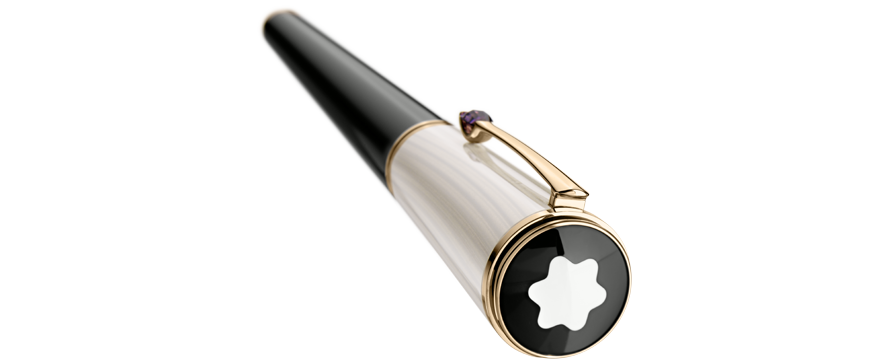 Kolekcja damska od marki Montblanc La Donna jest piękna, wyjątkowo kobieca, a także zachwycająca. Poświęcona znakomitej aktorce Ingrid Bergman (1915- 1982). Korpus został wykonany z czarnej żywicy, wykończenia pokryte różowym złotem. Skuwka pokryta warstwą masy perłowej. Klips zakończony ametystem. Stalówka wykonana jest z 18-to karatowego złota, ręcznie robiona. Pióro wieczne tylko na naboje.