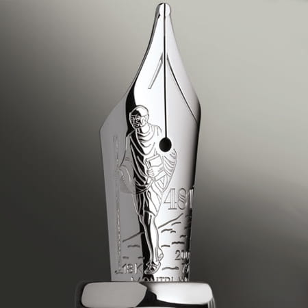 Stalówka przedstawia wizerunek Mahatmy Gandhiego, idącego z kijem.
