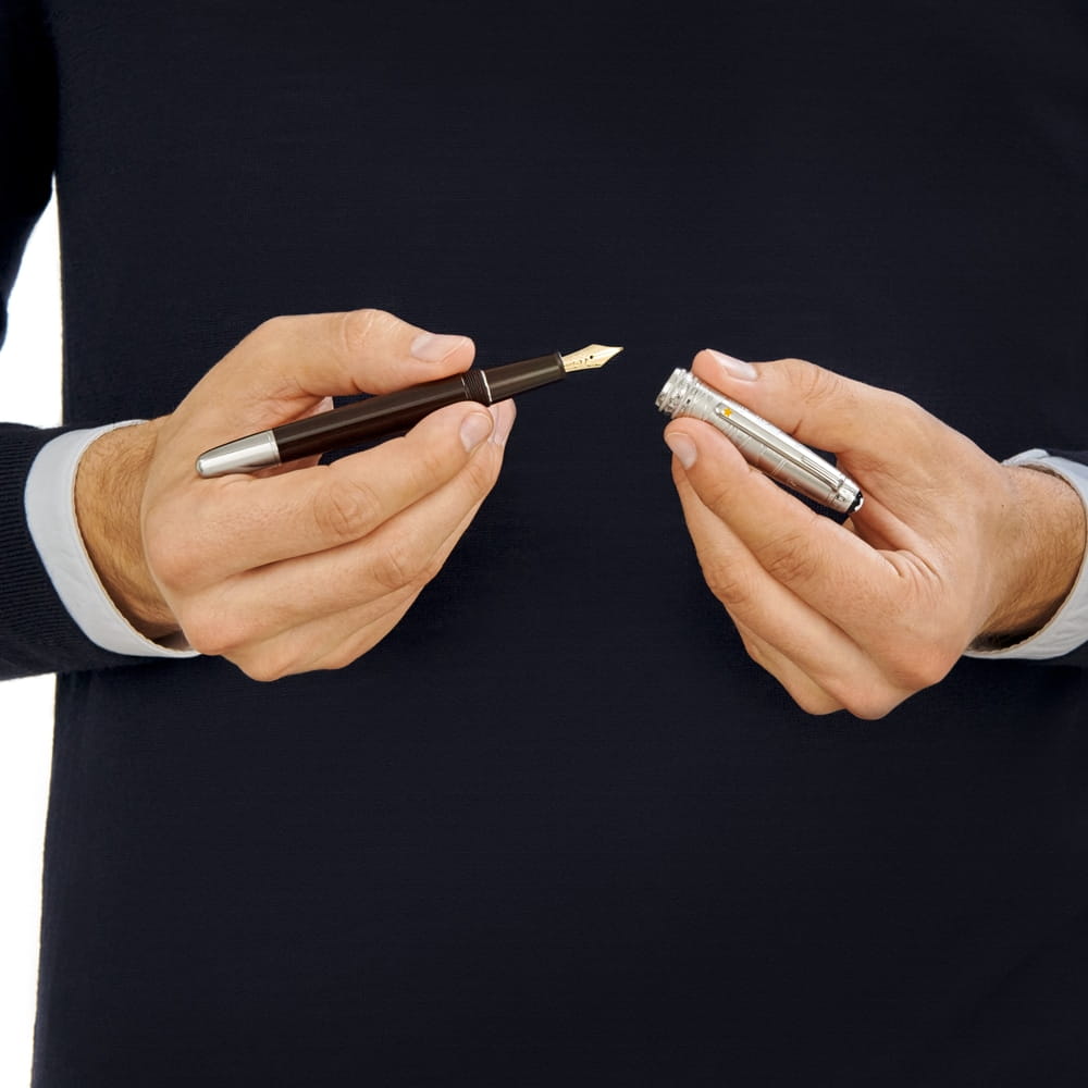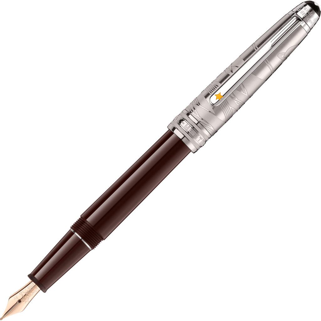 Pióro wieczne Montblanc Meisterstück Le Petit Prince wykonane jest z ciemnobrązowej szlachetnej żywicy. Kolor brązowy nawiązuje do koloru pustyni oraz stroju lotnika. Na górnej części skuwki widoczny jest grawer z cytatem “Toutes les grandes personnes ont d’abord été des enfants." (Wszyscy dorośli byli kiedyś dziećmi) z książki "Mały Książę". Dodatkowo na skuwce znajdziemy logo marki Montblanc. Klips posiada żółtą gwiazdę, która jest symbolem gwiazd, które otaczały Małego Księcia. Wykończenia pokryte są platyną.