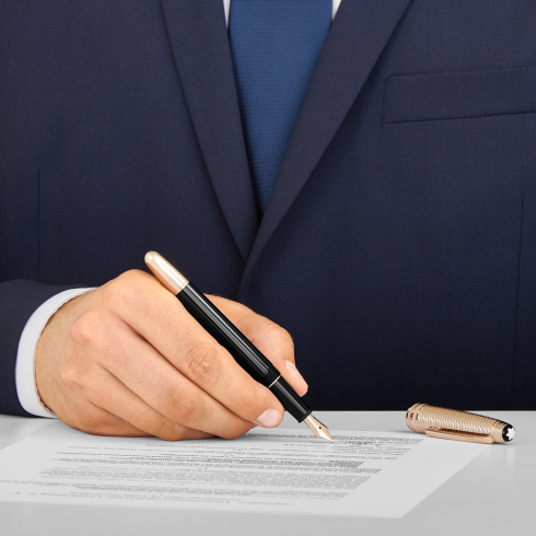 Kolekcja marki Montblanc o nazwie Meisterstück Solitaire to połączenie klasyki z wyjątkowymi materiałami. Geometryczny wzór w kolorze szampańskim, klips pokryty kolorem złotym oraz trzy pierścienie w tym samym odcieniu. Korpus wykonany z szlachetnej żywicy.
