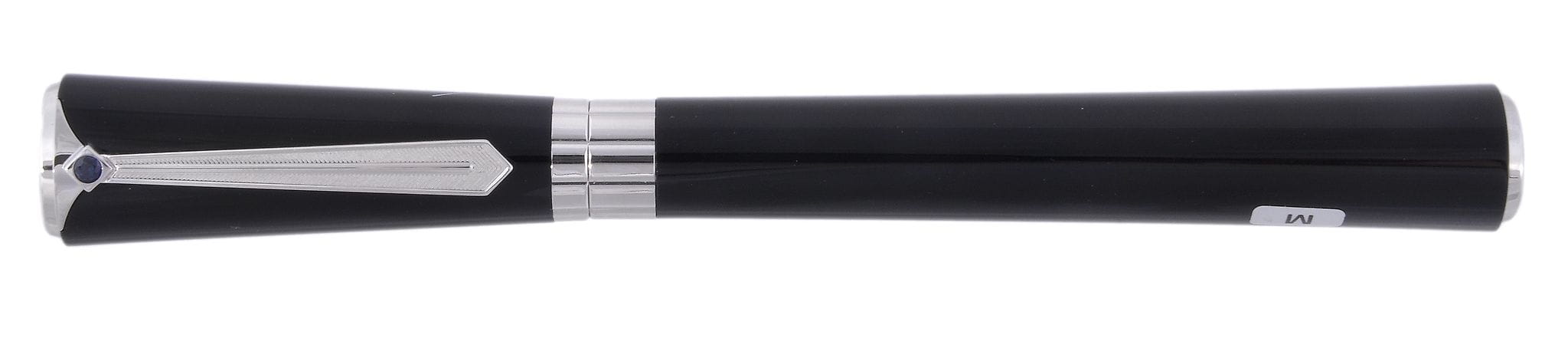 Pióro wieczne wykonane z czarnej żywicy oraz platerowanego platyna metalu.