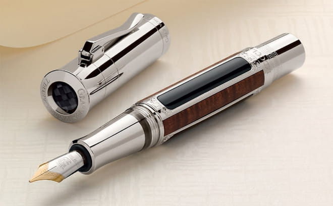 Korpus pióra w wersji platynowanej kryty jest panelami wykonanymi z czarnego onyksu i podpalanego klonu obsadzonymi w platynowych ramkach. Skuwkę pióra wieńczy czarny onyks, rozdrabniany i polerowany szlifem diamentowym. Pióro wyposażone jest w dwukolorową, 18-karatową stalówkę oraz zamknięty system tłokowy.
