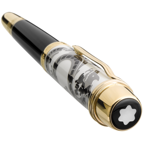 Pióro wieczne Montblanc Luciano Pavarotti zostało wyprodukowane tylko 888 egzemplarzach na świat. Kolorystyka utrzymana w czerni i bieli, nawiązuje do smokingu, który nosił artysta. Na skuwce sylwetka chińskiego smoka - nawiązanie do opery Pucciniego „Turandot” oraz arii „Nessun dorma”. Oczy smoka wykonane są z granatu. Wykończenie korpusu posiada 18 karatowe złoto. Stalówka dwukolorowa nosi wzór przypominający zgięty gwóźdź, który był talizmanem śpiewaka.