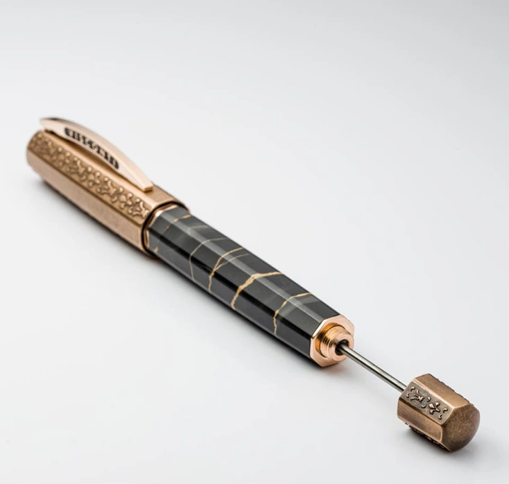 Marmurowy korpus pióra z Portoro jest ukształtowany w kultowy ośmiokątny kształt inspirowany baptysterium we Florencji, przy użyciu specjalnych precyzyjnych maszyn.