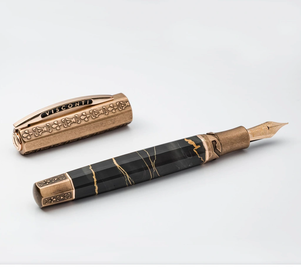 Cenność pióra wiecznego Il Magnifico Black Marble jest wzmocniona przez kontrast między czarnym marmurem, a stalówką z 18-karatowego różowego złota.