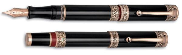 Pióro posiada tłokowy system napełniania i zostało umieszczone w pięknym drewnianym , lakierowanym opakowaniu z kałamarzem.
