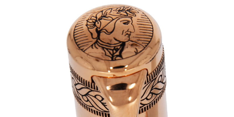 Wykończenia platerowane różowym złotem.
