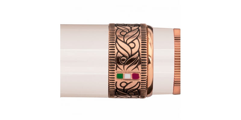 Pióro wieczne wykonano z metalu, na który nałożono biały lakier.