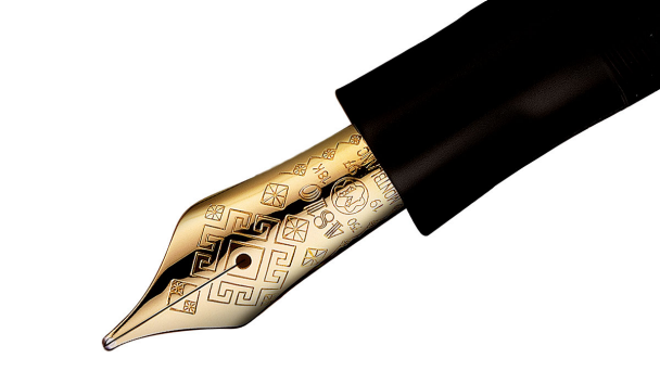 Stalówka 18 kt złota, misternie grawerowana, rodowana.