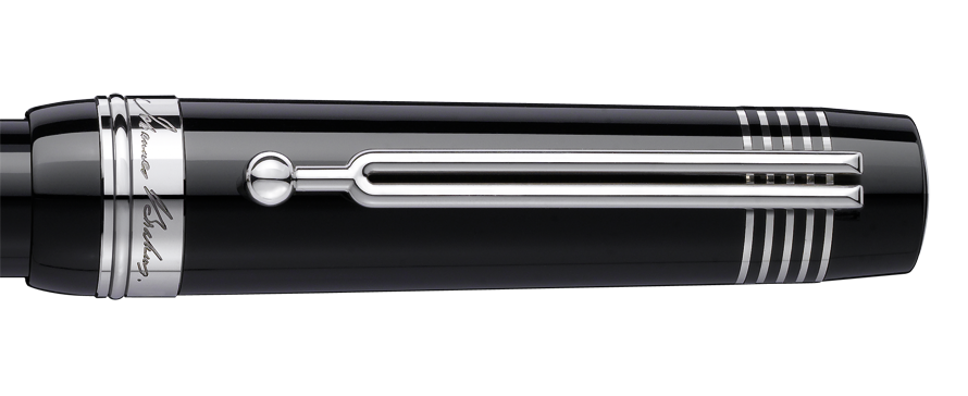 Lufa i skuwka wykonane są z czarnej, szlachetnej żywicy. Klip w formie kamertonu i pięć linijek nuty, które zdobią czapkę, przywodzą na myśl pierwsze nuty i oczekiwanie tuż przed występem orkiestry. Delikatne wygrawerowane podpisy Johannesa Brahmsa na pierścieniu skuwki dopełniają pióro kulkowe, któremu towarzyszy kamerton jako coś specjalnego. W specjalnym pudełku prezentowym znajduje się dodatkowo kamerton jako nawiązanie do tego naprawdę wspaniałego muzyka.
