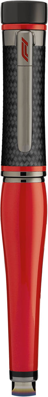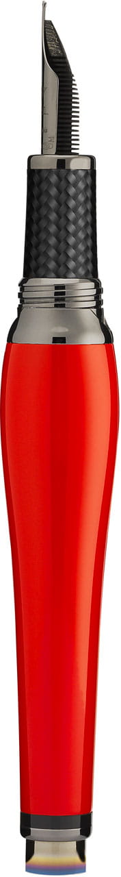 Pióro wieczne wykonano z włókna węglowego oraz mosiądzu na który nałożono czerwony lakier. Wykończenia srebrne powlekane czarnym rutenem.