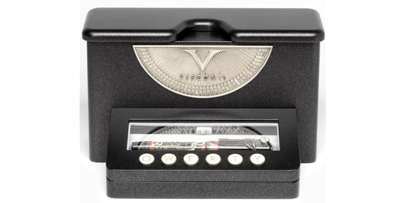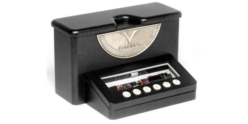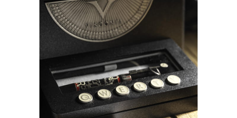 Na skuwce znajduje się również stara srebrna tabliczka z logo Visconti, przypominająca maszynę do pisania.