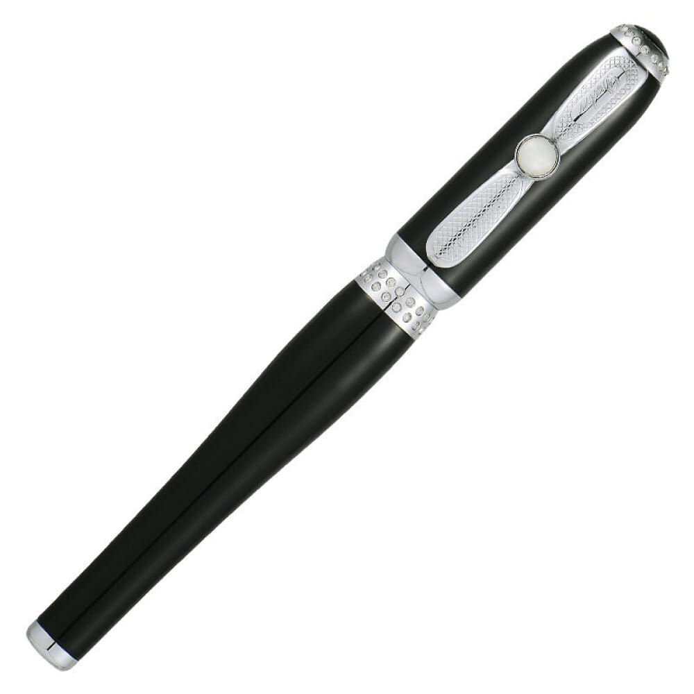 Kolekcja Duke Chast Lady New to propozycja piór dla pań. Wykonane z mosiądzu lakierowane lśniącym lakierem w żywych kolorach, wykończone chromem zachwycają kobiecym kształtem. Korona skuwki zwieńczona masą perłową. Instrument urzeka dbałością o szczegóły, jakością wykonania i komfortem użytkowania. Doskonałe na prezent dla pań. Wersja w kolorze złamana biel. Pióro zdobione na skuwce i korpusie małymi kryształkami a klips zdobiony kamieniem z masy perłowej. Pióro wieczne wyposażone w konwerterowy system napełniania z możliwością wymiany na naboje atramentowe.