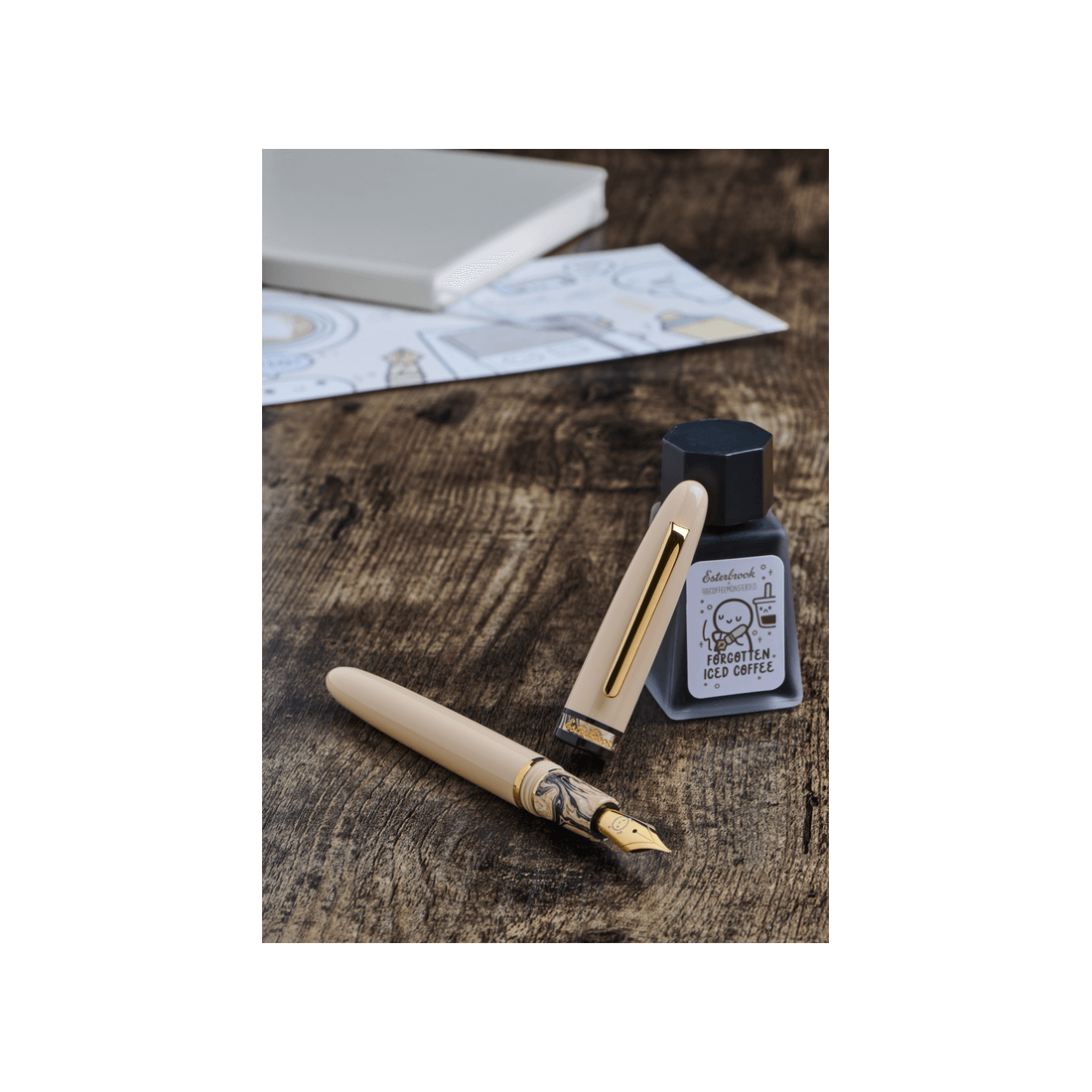 Pióro wieczne Esterbrook Estie Coffee Edition to wyjątkowa propozycja przygotowana z okazji 9. rocznicy powstania projektu TheCoffeeMonsterzCo autorstwa Helen Wang. Inspirowane filiżanką mrożonej kawy, wykonane zostało z kremowej żywicy akrylowej, której subtelne odcienie beżu i brązu na sekcji przypominają wirujące mleko w kawowym napoju.