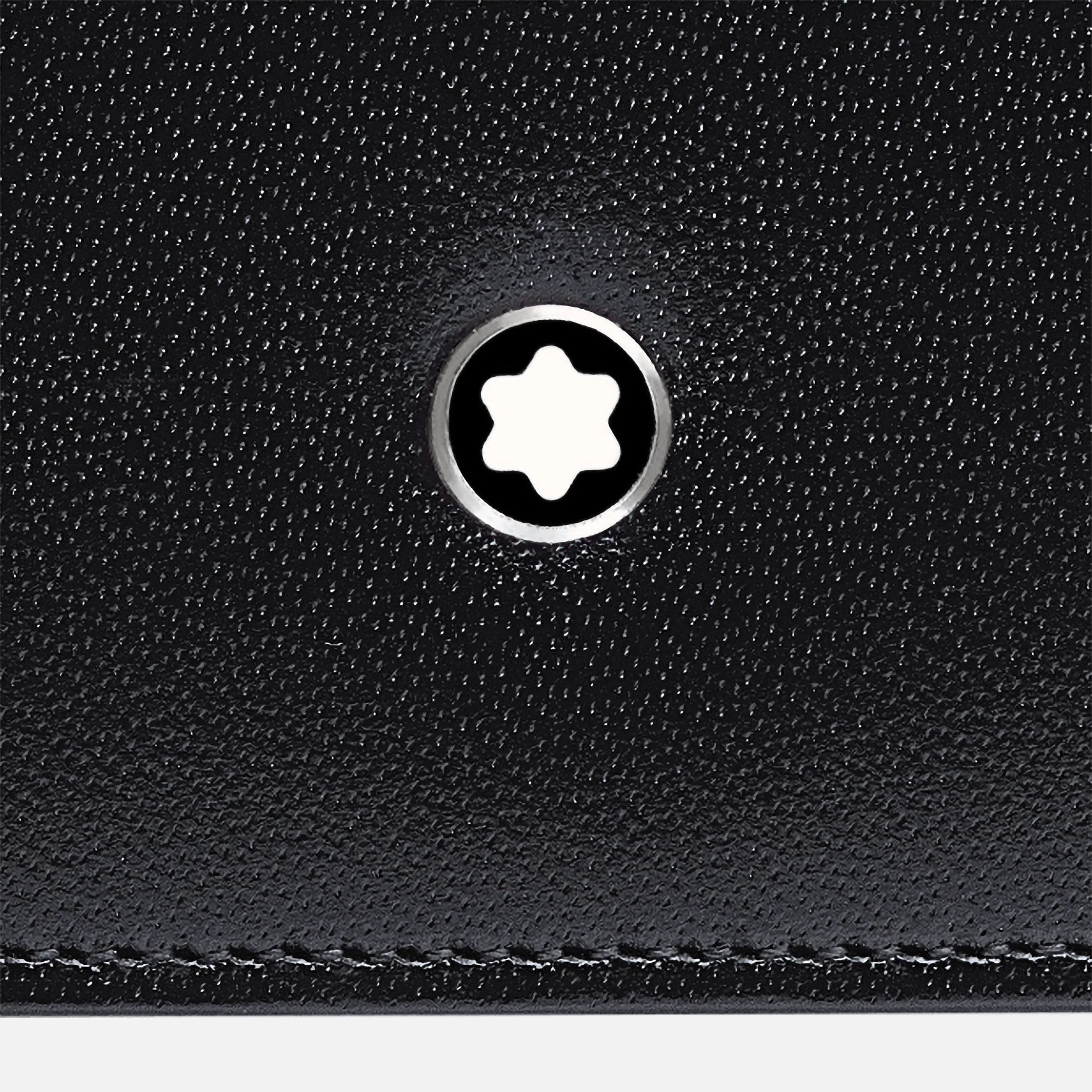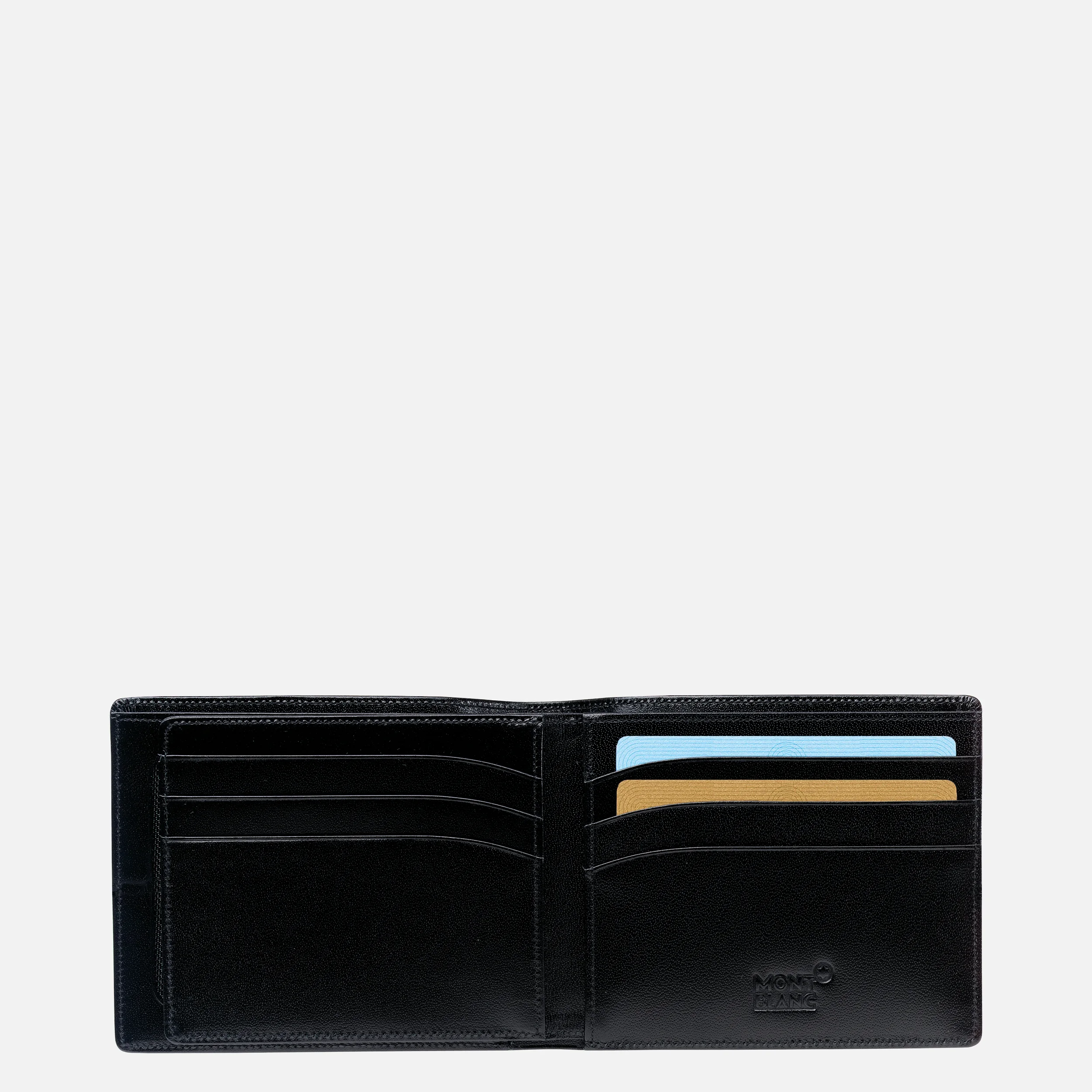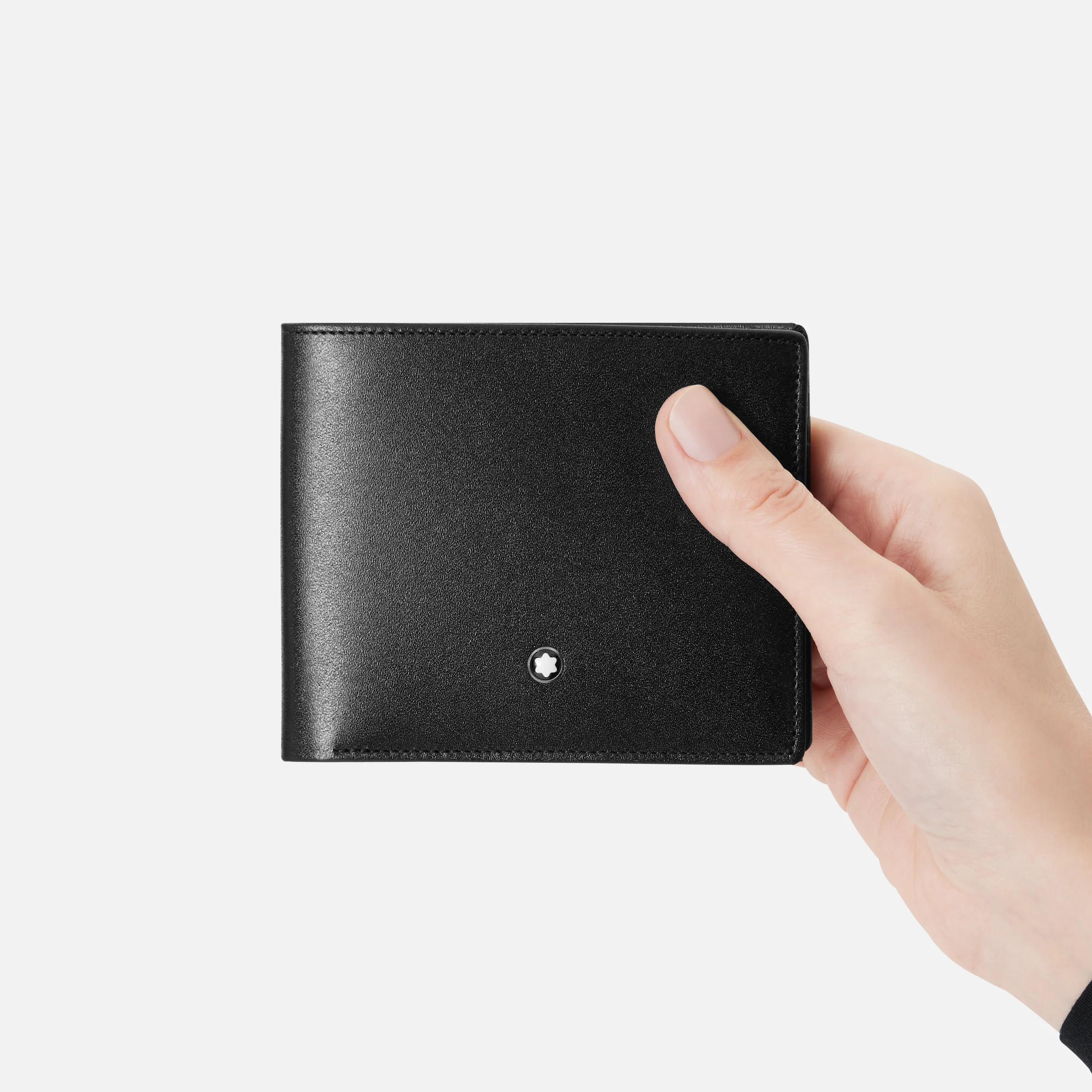 Portfel Meisterstück wykonany jest z czarnej skóry Montblanc o głębokim połysku. Oferuje miejsce na maksymalnie sześć kart kredytowych w odpowiednich przegródkach, banknoty i dokumenty osobiste w dwóch przegródkach.
