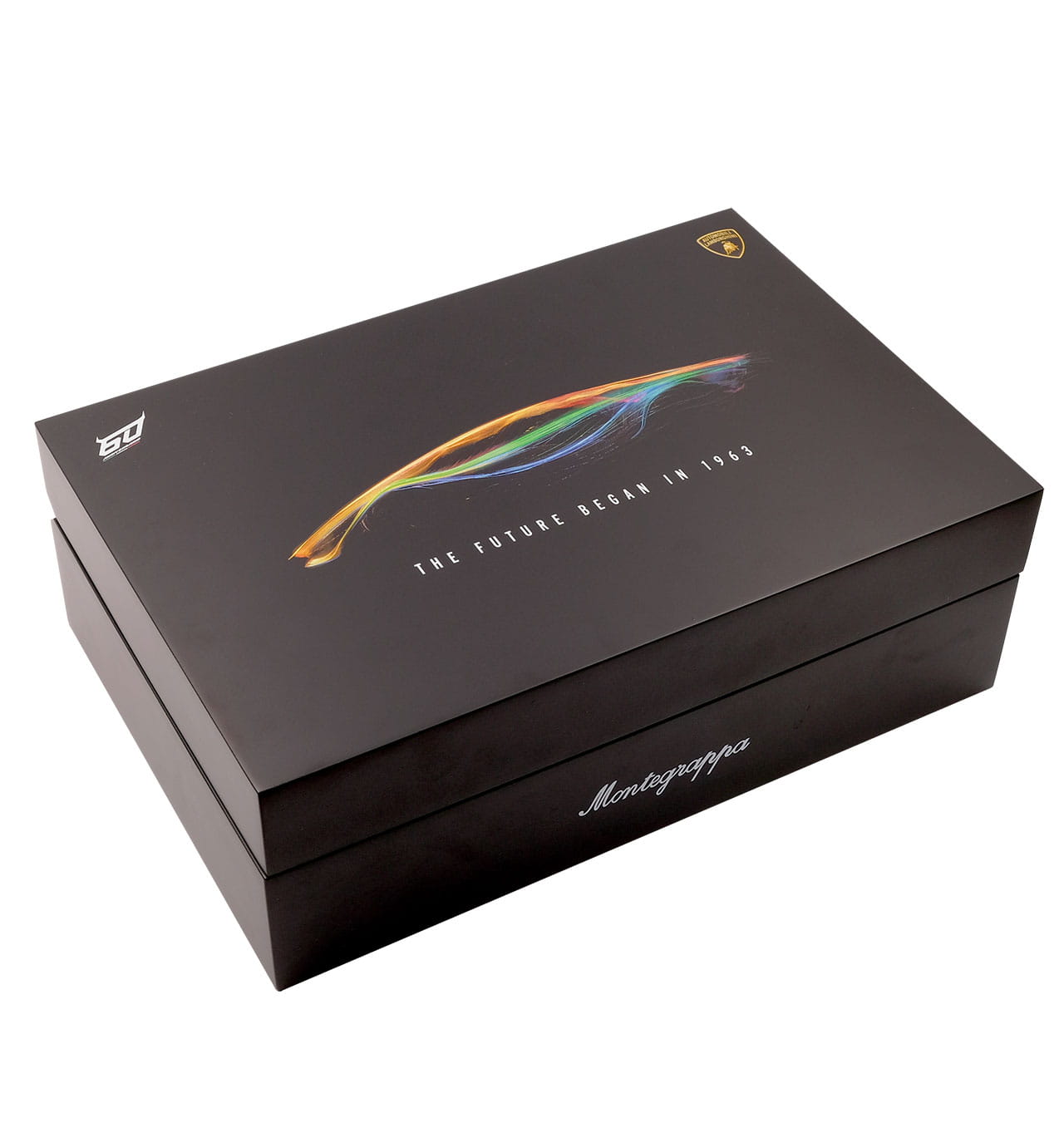 Ekstremalna wydajność i wyrazista forma pobudzają zmysły w ramach rocznicowego hołdu złożonego włoskiej ikonie. Współpraca z Automobili Lamborghini łączy futurystyczne linie, funkcjonalność i niepohamowane emocje, aby wyrazić niemożliwe. Sześćdziesiąt lat marzeń o maszynach syntezuje się w sylwetce, która wyobraża sobie pisanie bez ograniczeń, w której materiały i wydajność mechaniczna odpowiadają ambicjom włoskiego designu.