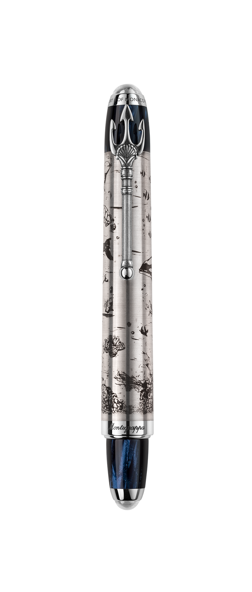 Szczegółowe grawerunki na skuwce i korpusie w kolorze satynowego srebra kontrastują z wizją oceanu.