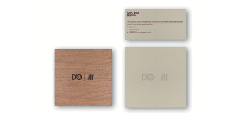 Produkowany w partiach po zaledwie 100 sztuk na sezon, D'O opiera się na etosie QUATTRO, wykorzystując odnawialne materiały i pomysły. Wydania obejmują dziennik z przepisami z recyklingu i sezonowy przepis Davida Oldani.