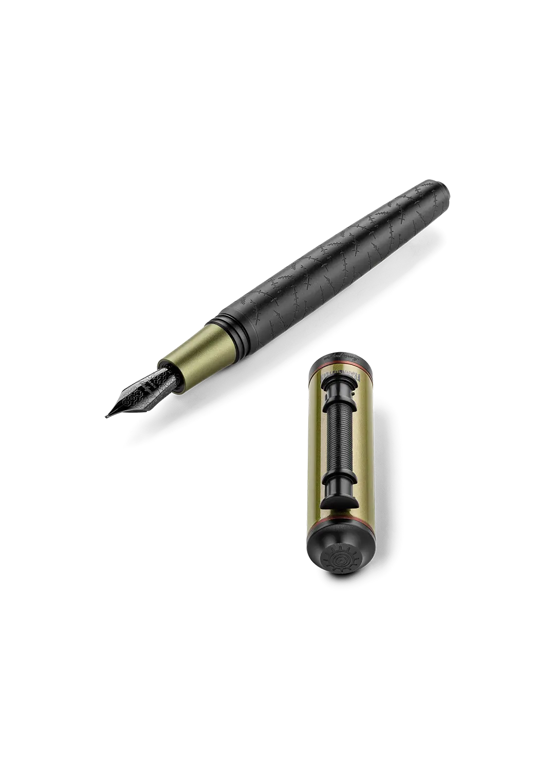 Korpus wykonano z anodowanego aluminium oraz mosiądzu, dzięki czemu pióro jest solidne i dobrze wyważone. Długość 147 mm oraz waga 50 g zapewniają stabilność i komfort podczas pisania. Stalowa stalówka dostępna w rozmiarach EF, F, M lub B pozwala dopasować grubość linii do indywidualnych preferencji użytkownika. Co więcej, system napełniania na naboje lub konwerter zwiększa wygodę codziennego użytkowania. W zestawie znajdują się dwa naboje oraz konwerter, dlatego możesz rozpocząć pisanie natychmiast po rozpakowaniu.
