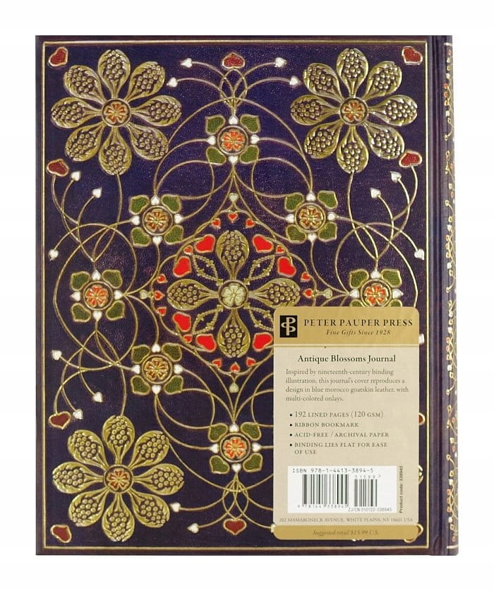 Bezkwasowy papier o jakości archiwalnej pomaga zachować wpisy do dziennika a wspaniały wzór okładki jest wytłoczony złotymi refleksami.