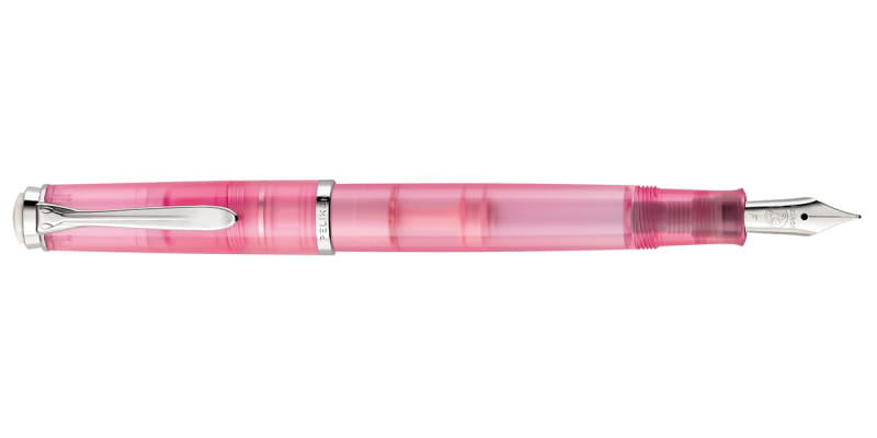 Pióro wieczne Pelikan Classic M205 Rose Quartz wyróżnia nietuzinkowy różowy odcień, inspirowany atramentem Edelstein Ink of the Year 2023. To bardzo kobieca i delikatna edycja specjalna wprowadzona do portfolio niemieckiego producenta w roku 2023. Korpus i skuwka są transparentne, co sprawia, iż instrument piśmienny wydaje się być wyjątkowo lekki i wysublimowany. Kontrastują z nimi wykończenia, czyli pierścienie i klips w srebrnym kolorze, polerowane na wysoki połysk. Na jednym z pierścieni odnaleźć możemy grawerunek nazwy Pelikan. Stalówka wykonana została z wysokiej jakości stali nierdzewnej. Pióro wieczne charakteryzuje doskonała jakość wykonania i klasyczny design, typowe dla niemieckiego producenta. Jego znakiem rozpoznawczym jest klips w kształcie dziobu pelikana. Doskonałe wyważenie pióra gwarantuje doskonałą ergonomię i wygodę użytkowania, zarówno ze skuwką nałożoną na korpus, jak i bez niej. Warto dodać, iż model z kolekcji Pelikan Classic M205 to bliźniacza wersja Pelikana Classic M200, różniąca się kolorem wykończeń - tutaj srebrne zastępują złote. Dopełnieniem pióra wiecznego jest dedykowany kolekcji atrament w tym samym kolorze.