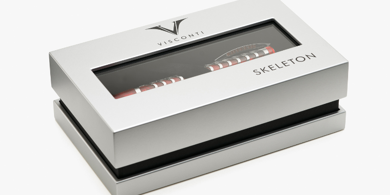 Pierwsza kolekcja wprowadzona na rynek ponad 20 lat temu charakteryzowała się filigranowym designem opartym na połączeniu stylizowanego logo Visconti. Zamiast tego, ten nowy przyrząd do pisania przywraca technikę szkieletowania do jej pierwotnej inspiracji, czyli ludzkiego szkieletu. Jak z prześwietlenia rentgenowskiego, biały srebrny filigran organicznego wzoru wyróżnia się na tle kontrastującej żywicy, podkreślając kształt 12 par „żeber” połączonych z „kręgosłupem”.