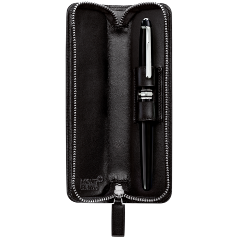 Etui na artykuły piśmienne Montblanc Meisterstück Classic wykonane zostało z czarnej skóry cielęcej, pełnoziarnistej. Posiada czarną podszewką żakardową, z przegrodą na dwa artykuły piśmienne wielkości Meisterstück Classique lub LeGrand.