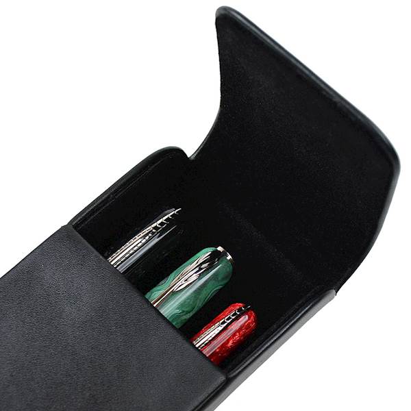 Przedstawiamy eleganckie skórzane etui na pióra Pineider z aksamitnym wnętrzem, dzięki czemu art. piśmienne nigdy nie są narażone na zarysowania lub wgniecenia. Magnetyczny system zamykania utrzymuje pióra bezpiecznie na miejscu i umożliwia wygodny dostęp w każdej chwili. Wyprodukowane we Włoszech zachowuje swój klasyczny kształt, aby zapewnić najwyższą jakość ochrony Twoich ulubionych piór