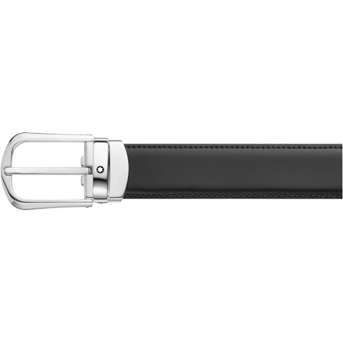 Curved Horseshoe Shiny Stainless Steel Pin Buckle. Self-adjustable, 3 cm x 120 cm, reversible black and brown leather strap