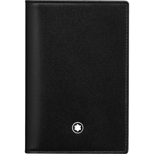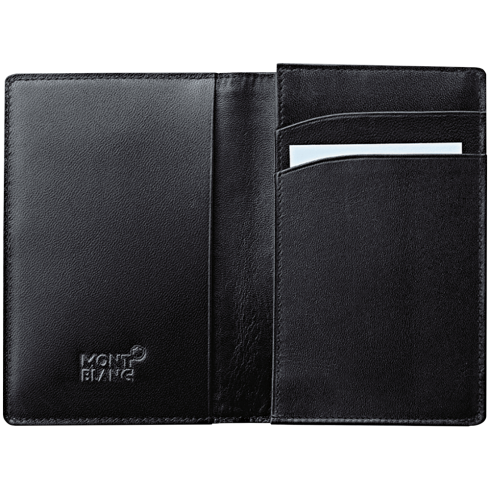 Wizytownik od Montblanc z kolekcji Meisterstück wykonane zostało z czarnej skóry bydlęcej pełnoziarnistej w Europie z unikalnym głębokim połyskiem, podszewką żakardową i emblematem Montblanc z pierścieniem pokrytym palladem. Posiada przegrodę na wizytówki, dwie kieszenie na karty kredytowe, a także dodatkową kieszenią.
